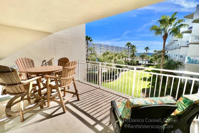 This condo is in the C building with straight-on beach views and covered back door parking. Located on the 4th floor, we are a quick elevator ride down to the tropical oasis that puts Waterscape on the map. This unit has been fully renovated with updated appliances, front load washer/dryer, and all new furnishings. This unit offers two master suites, each with a King bed, which is perfect for traveling with extended family or friends. The living room and southern master bedroom open to the spacious, sun-kissed patio which includes seating for 4 to enjoy the morning sun or afternoon shade.